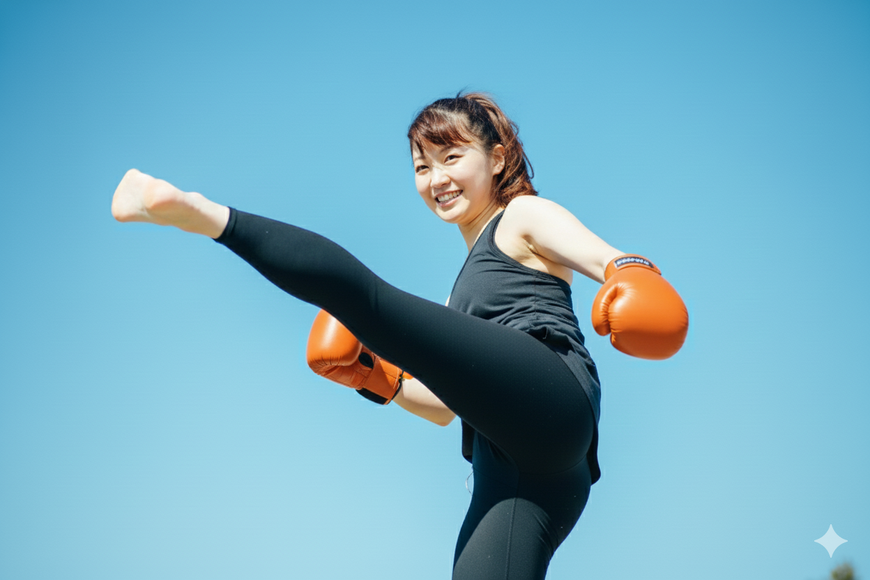 40代女性これまで家に篭りがちで前向きになれなかったんですが、キックボクシングをしだしてから強くなって体力もついてかなり楽しくなったので元気になりました!